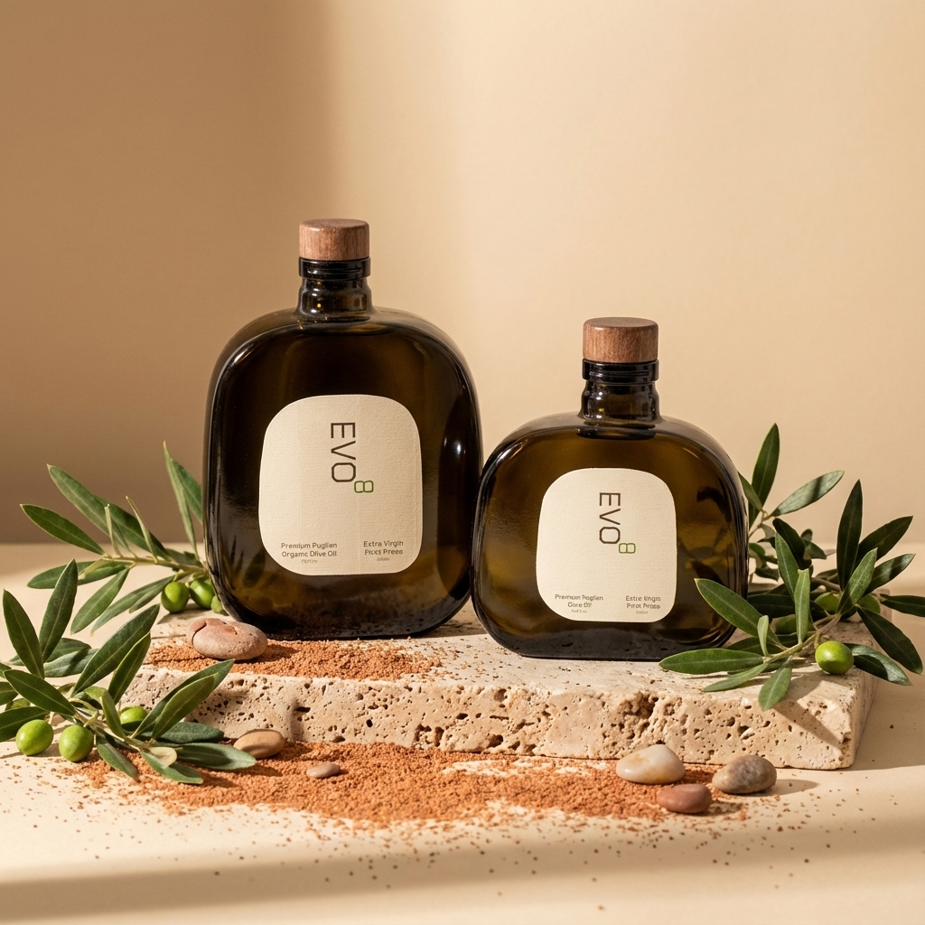 The olives used to create EVO8's extra virgin olive oil are harvested on a small scale at olive grooves in Puglia in the area between Bari and Brindisi.
